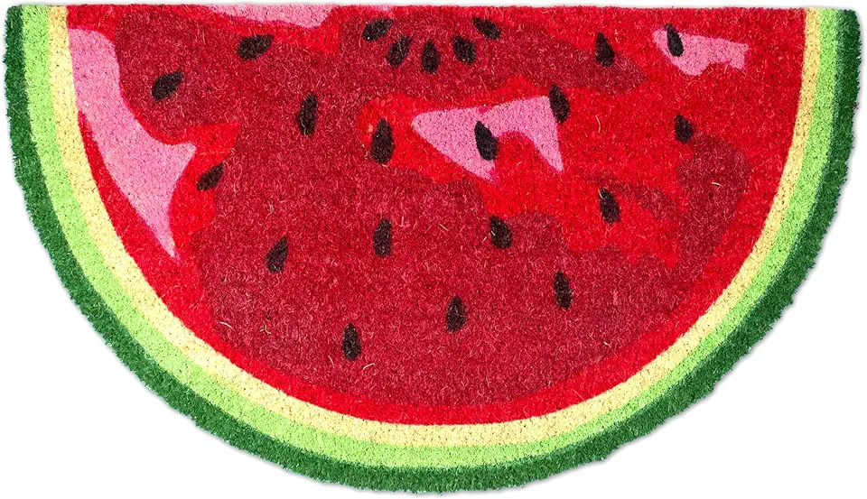 Apportez une touche d’originalité à votre entrée avec le tapis demi-lune décor pastèque, à la fois design et fonctionnel. Antidérapant et absorbant, il allie praticité et style pour égayer vos intérieurs et extérieurs.